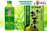 くまポンでは伊藤園の緑茶飲料、京都宇治抹茶入り お~いお茶 525mlを本日10時から(たぶん先着で)33000名に無料プレゼント。商品はファミリーマート店頭引き換え。